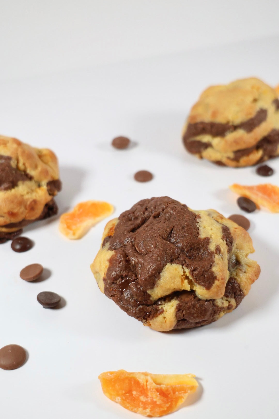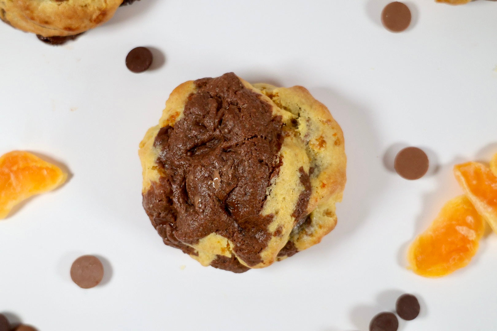Dried orange, orange oil, dark chocolate chips, milk chocolate chips, cacao powder
