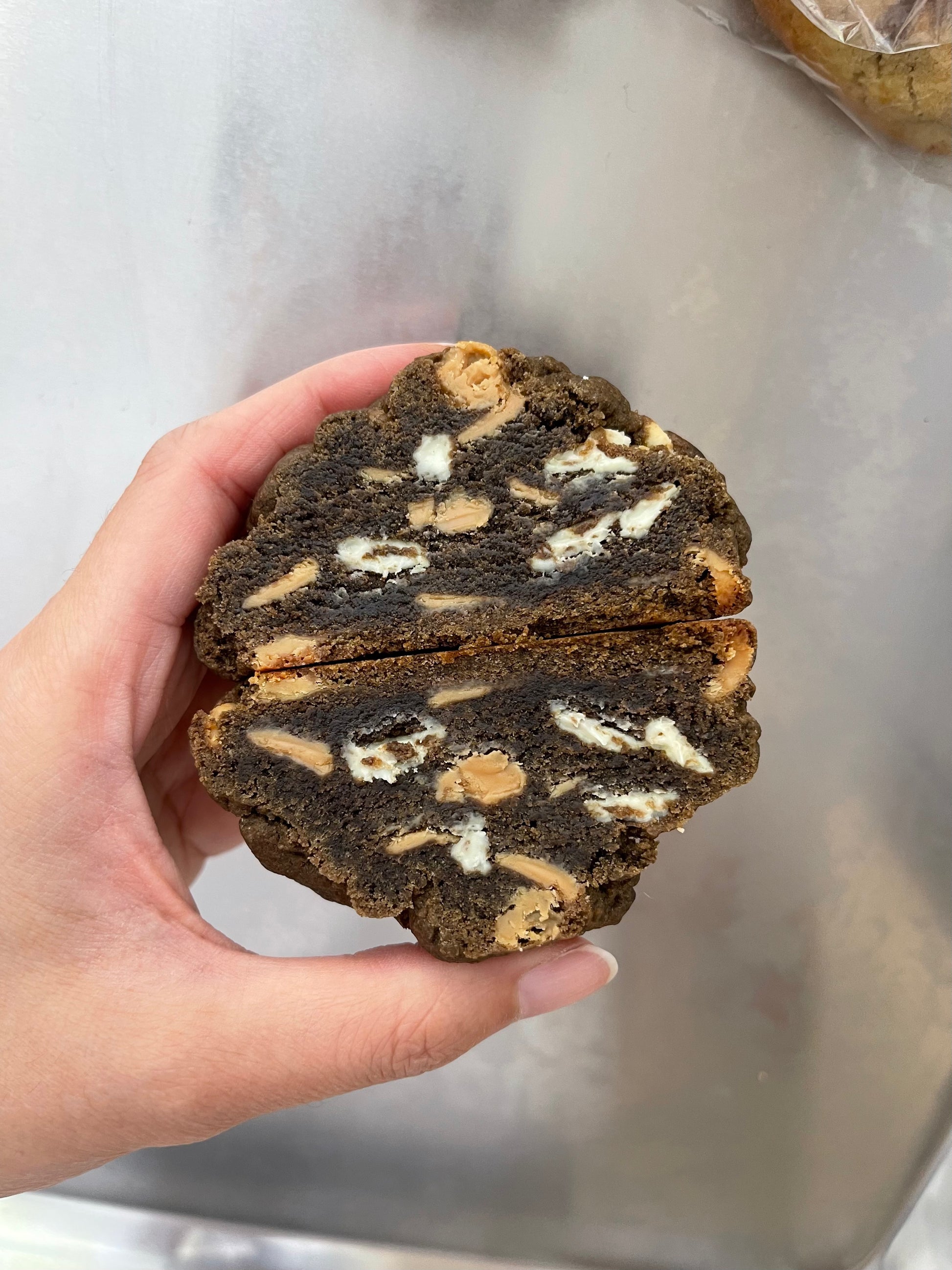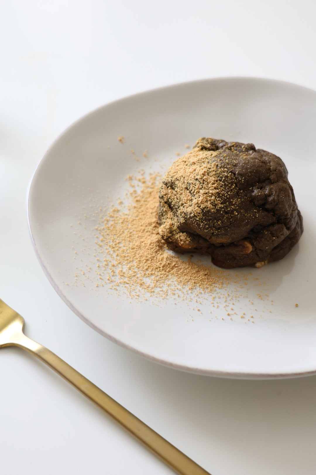 Organic roasted green tea powder, caramelize white chocolate chips, white chocolate chips, soybean powder